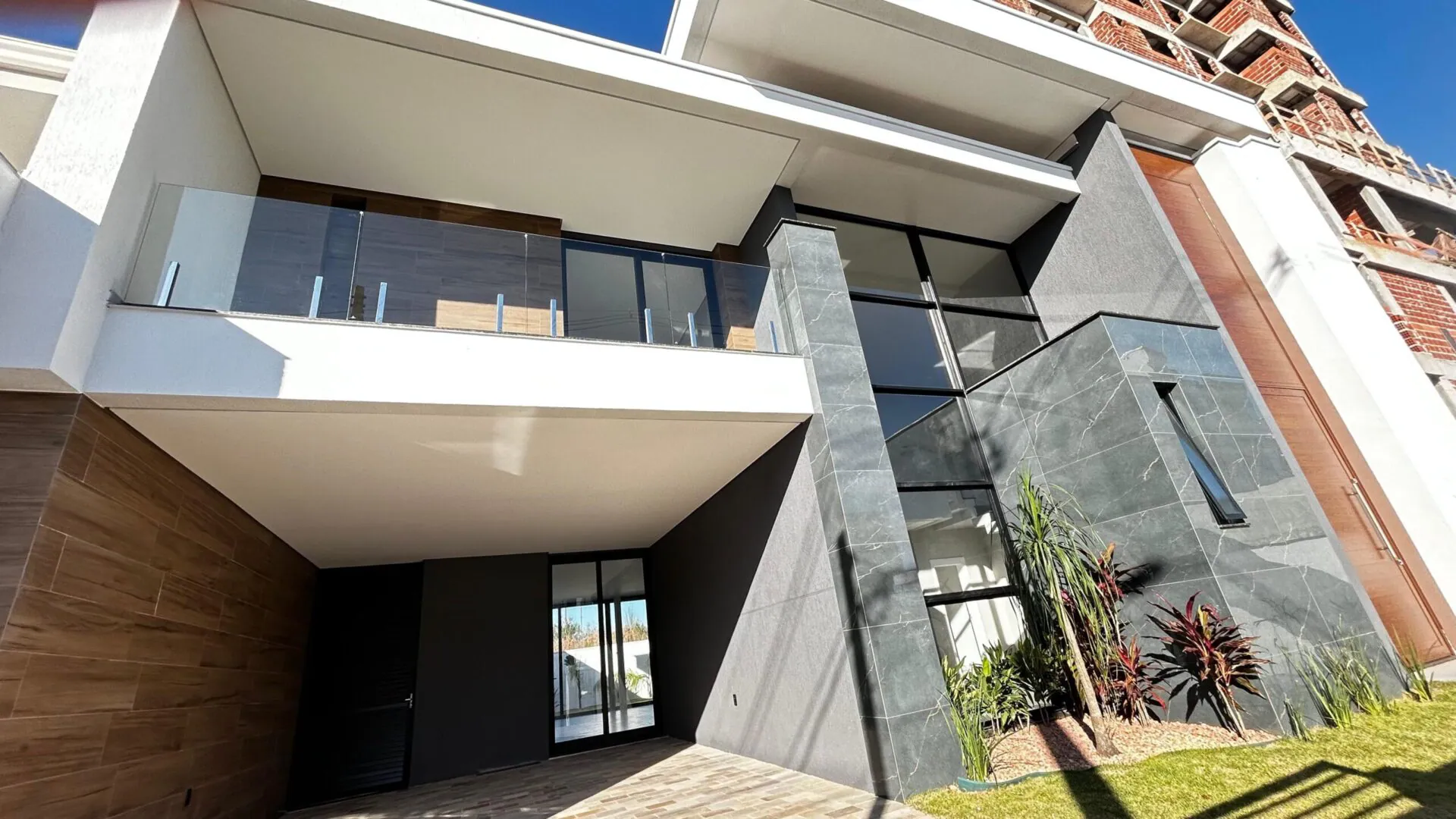 Linda casa contemporânea, com ângulos e formas diferenciadas, com fachada proporcionando mais