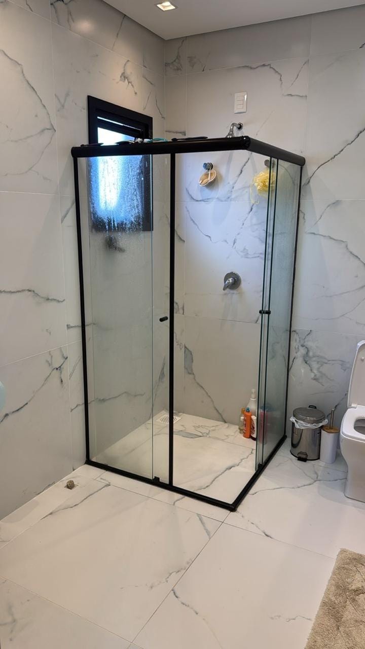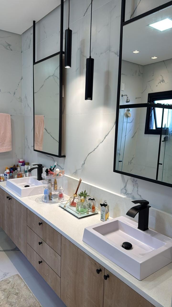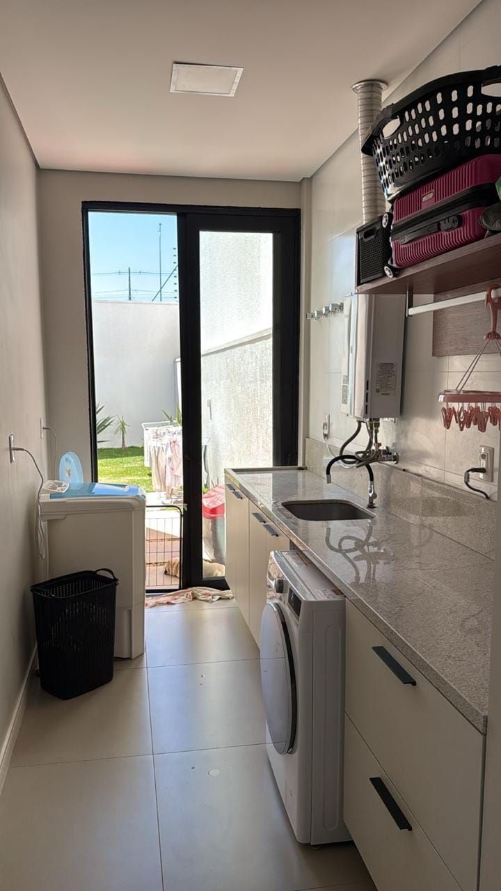 lavabo, garagem para 2 carros cobertos, lavanderia e jardim. Aberturas externas em alumínio,