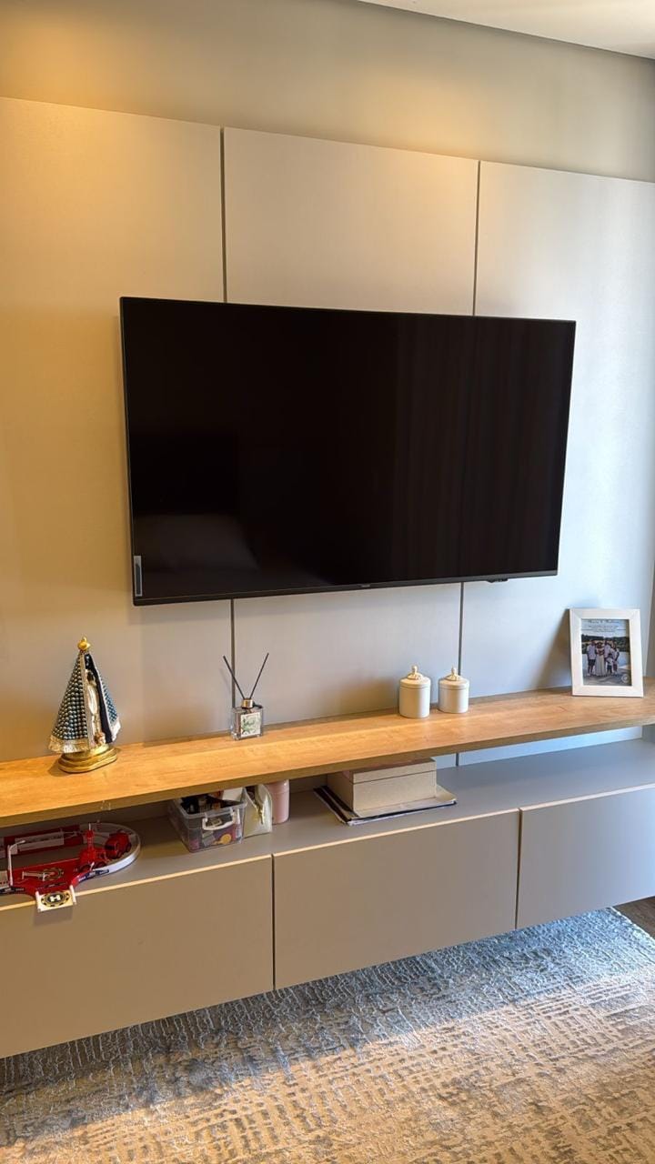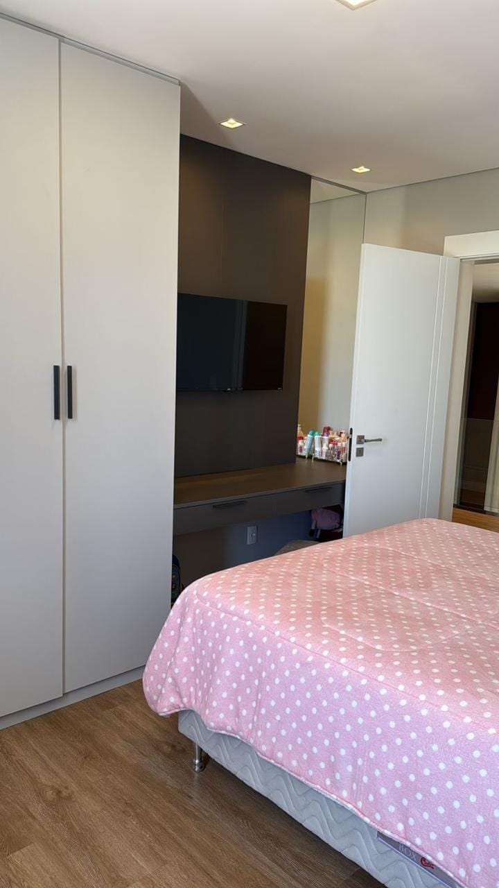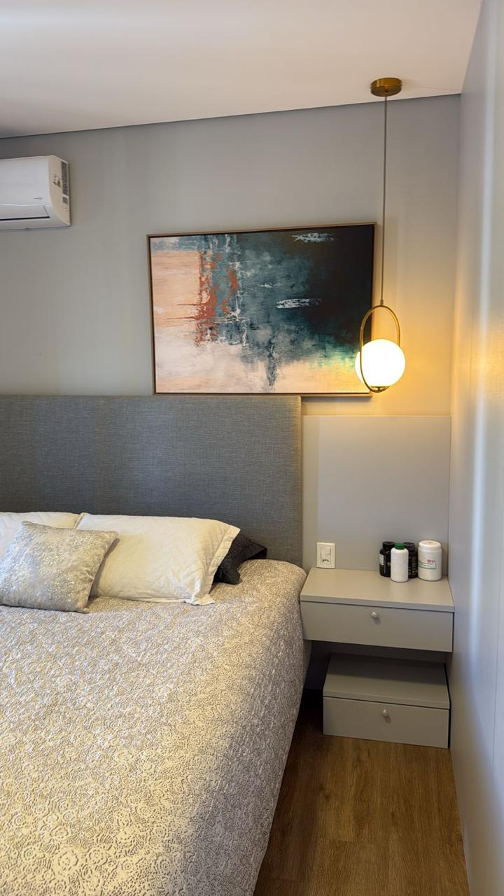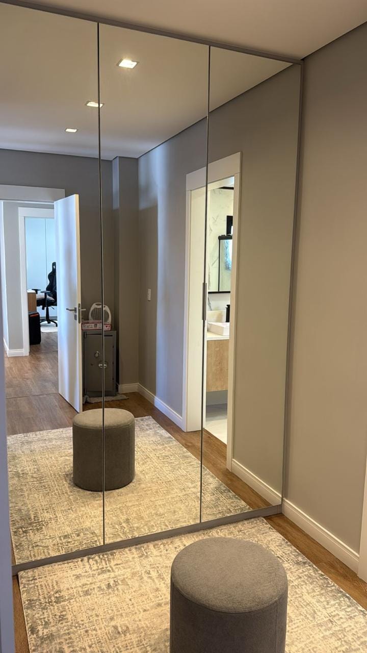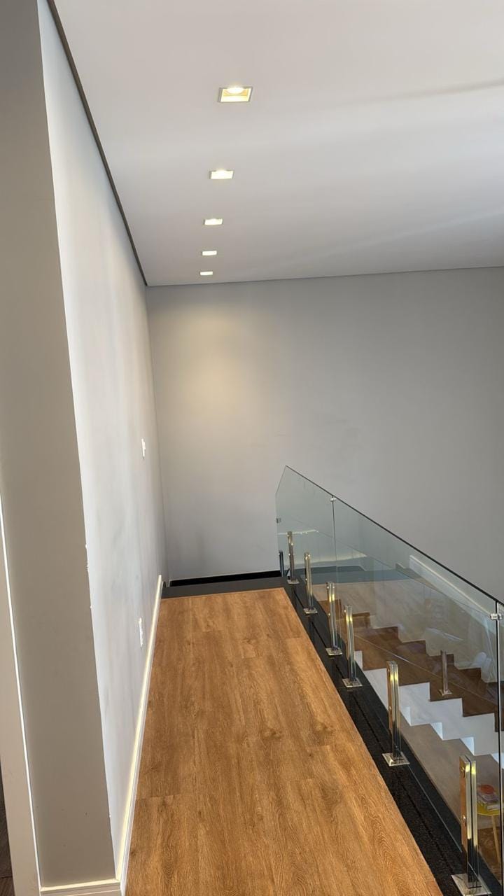 aberturas internas laqueadas, pintura com textura grafiato, porcelanato área social, laminado área