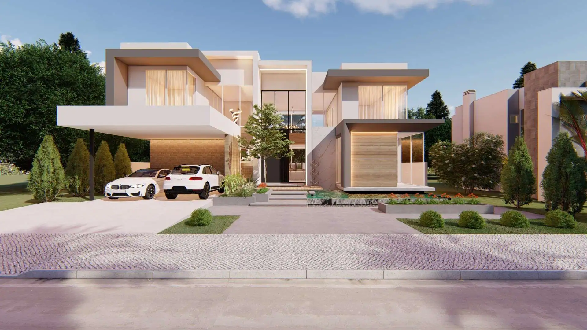 Esta residência possui um design único, com volumetrias imponentes aliadas a elementos sofisticados e ricos em detalhes como espelho d’água na sua entrada principal, a passarela de acesso a suíte máster que tem uma vista deslumbrante de todo o pé direito duplo, a área de lazer que conta com uma ampla piscina elevada com borda infinita e uma escada plissada em mármore. Além destes diferenciais ainda podemos contar com grandes aberturas, um pé direito duplo no living que oferecem uma ótima iluminação, além de proporcionar a visualização completa da área externa. Este conjunto de detalhes e elementos transformam a vida nesta residência em uma verdadeira experiência de requinte e sofisticação.